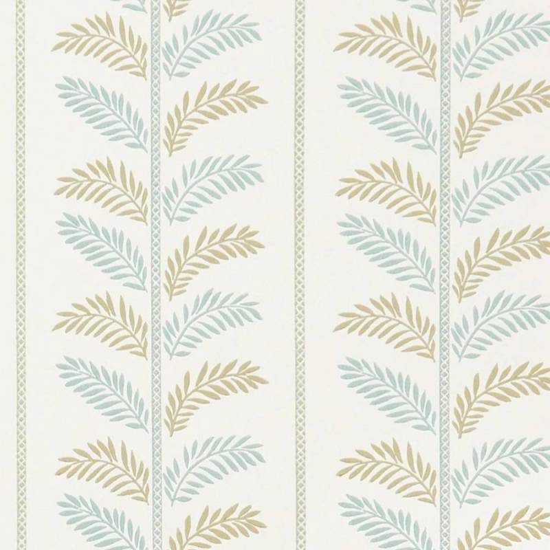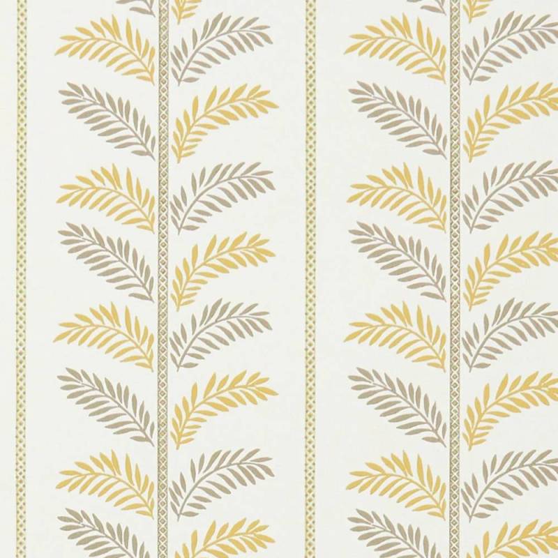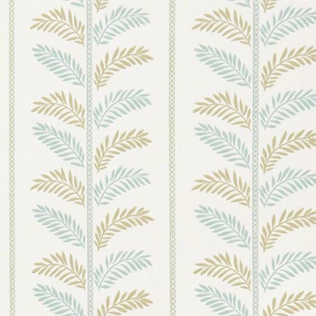 Les feuilles à plumes sont présentées de chaque côté d'une tige décorative dans une répétition de rayures.