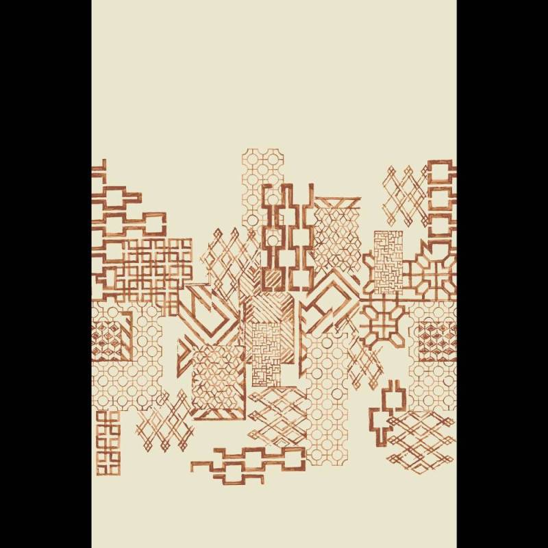 Une interprétation inspirée du milieu du siècle des motifs de treillis classiques, fusionnés pour former un panneau horizontal saisissant. Le modelé de l'œuvre peinte et la variété des échelles des formes apportent une touche de légèreté à ce design géométrique chic.