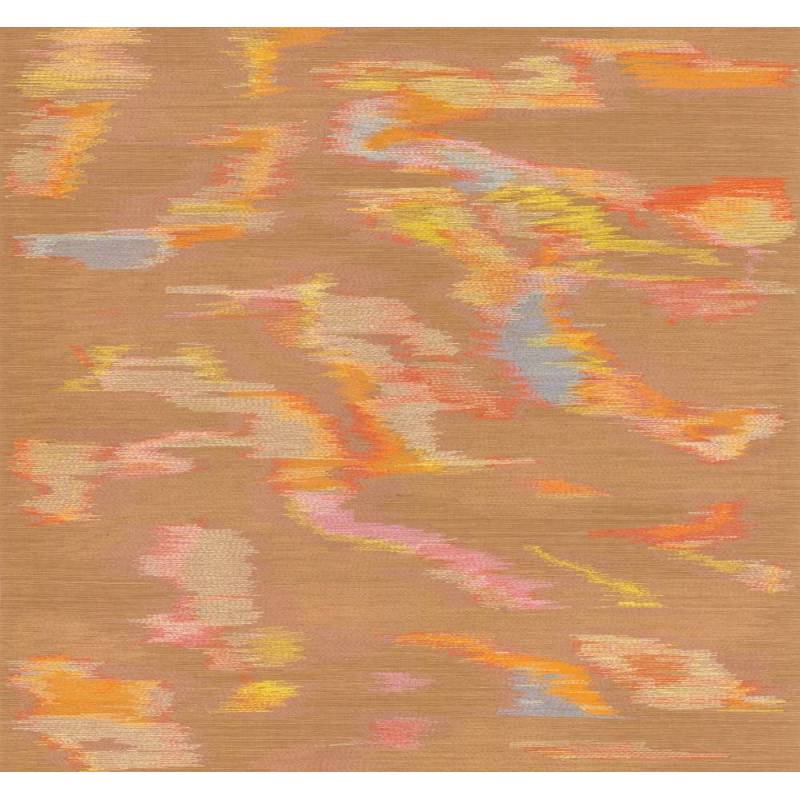 Dessin graphique marbré multicolore, brodé façon ikat dans une création de sisal faite main.