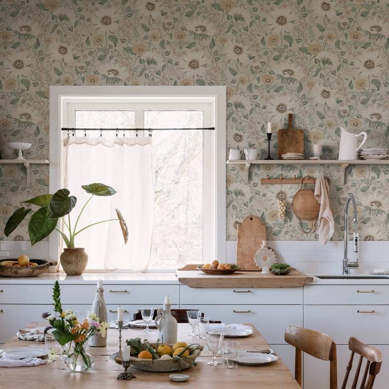 L'île du soleil et des vents" est une expression familière pour l'Öland. Pourtant, nous voulons prêter attention et chérir les tournesols, les coquelicots et les chicorées qui ont élu domicile dans ce grand paradis floral. Solveig, Colorful, a une base claire et douce, ornée de fleurs rouges, beiges et bleues avec un feuillage vert.