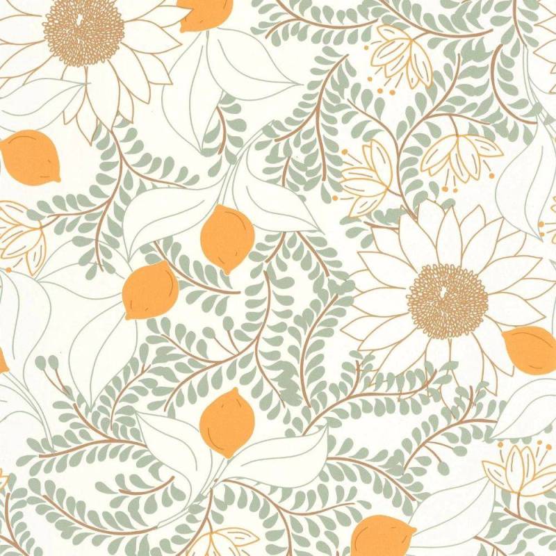 Végétal ! La cuisine d’inspiration méditerranéenne se réinvente grâce à ce motif de papier peint à grosses fleurs aux coloris frais et citronnés.