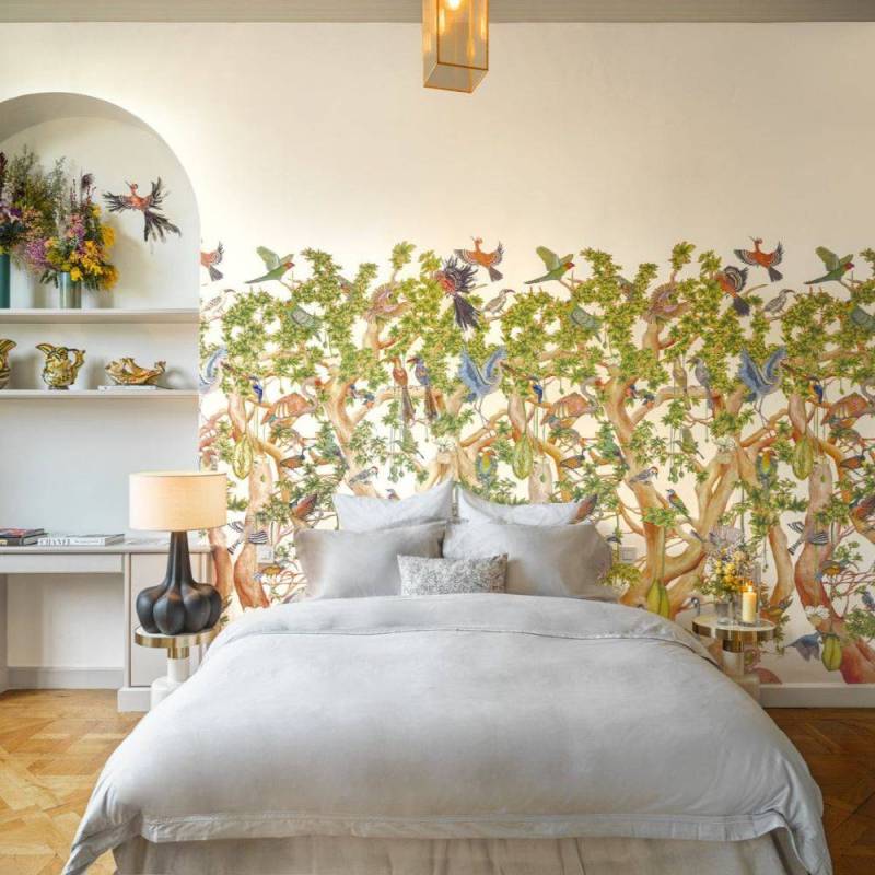 Les artistes des deux maisons de design ont peint à la main la faune ornementée de ce vaste tableau, où la touche distinctive de Cole & Son se fond harmonieusement avec le style caractéristique d’Ardmore.