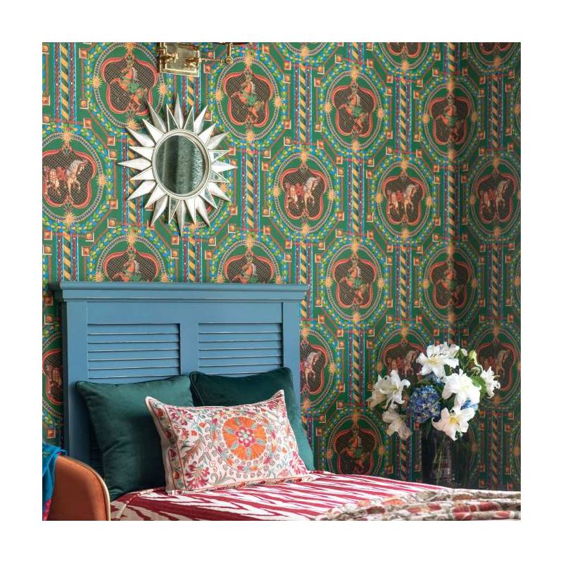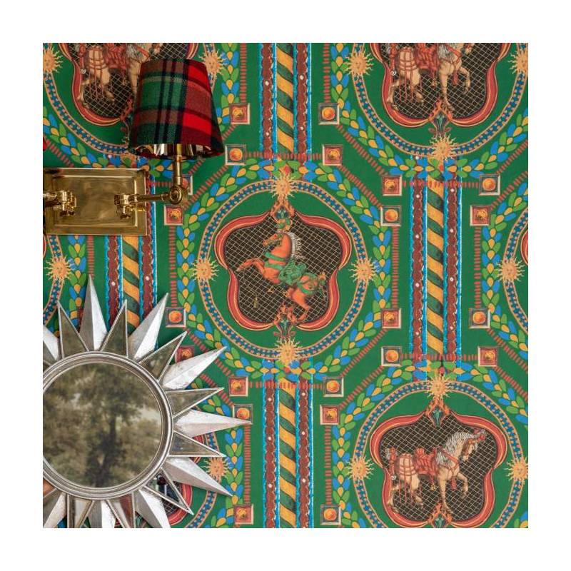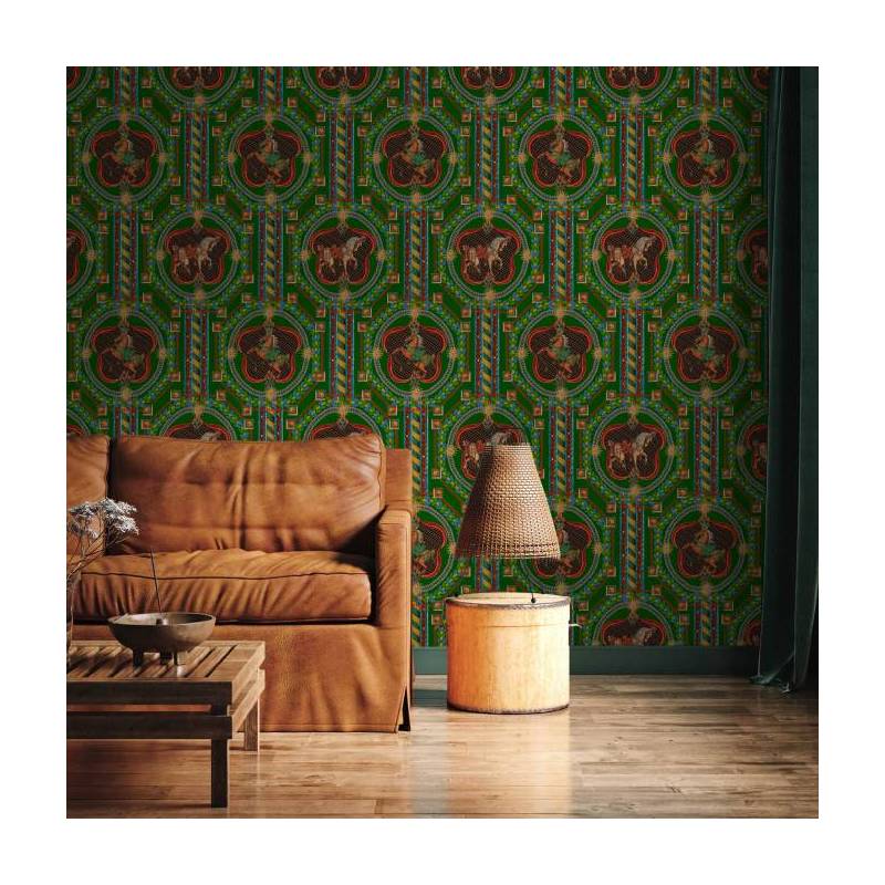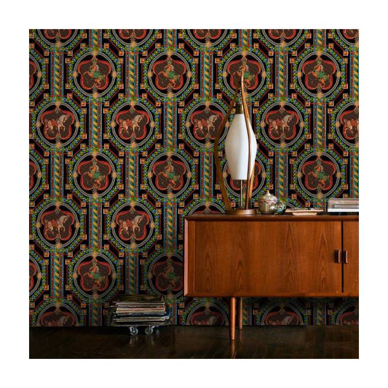 Les couleurs riches et les ornements décoratifs fins se marient magnifiquement dans le captivant papier peint Venetian Ornament. Posé sur un fond neutre contrastant, le cheval décoratif crée un point focal tandis que les bordures colorées et les motifs dorés du soleil enrichissent son attrait, faisant allusion à la magie complexe de l’art et du design vénitiens. Injectez de la couleur et du luxe dans votre maison avec cet imprimé séduisant et envoûtant.