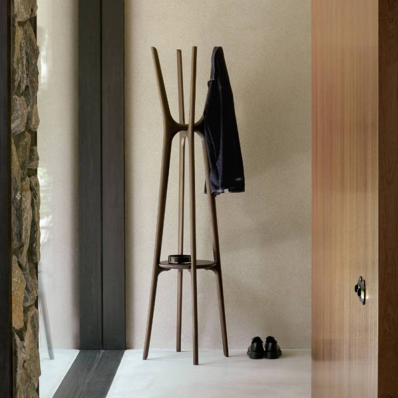 La collection PI rend hommage au design du vivant en conservant la force, les courbes et les lignes créées par la nature. Des formes intrigantes se dessinent dans cette finition polie et imparfaite, à la fois élégante et stylée. Chaque modèle de la collection PI est fini à la main pour garantir le respect du caractère unique du bois. Le porte-manteau PI permet de ranger simplement manteaux, chapeaux et autres effets personnels avec style.