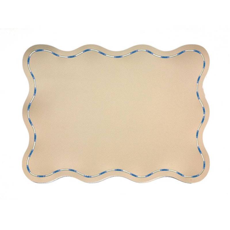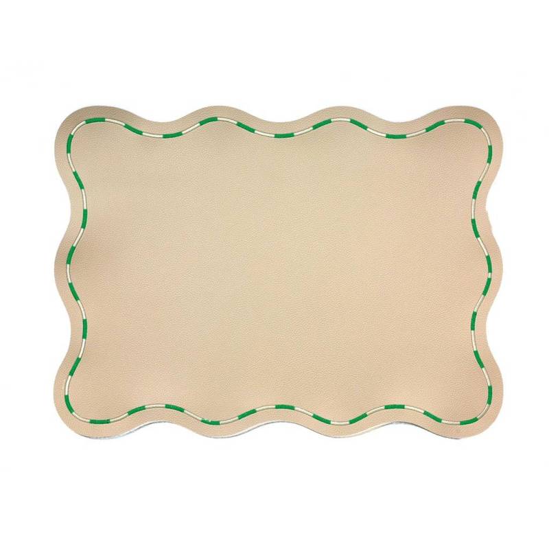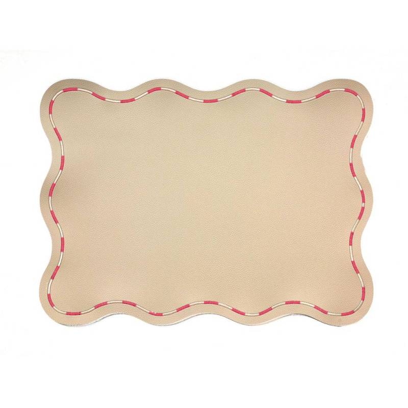 Set de table façon cuir aux bords ondulés, avec une surpiqûre contrastée pour une finition élégante. Facile d’entretien : un coup d’éponge suffit.