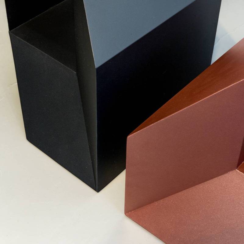 Rocky est fabriquée par un artisan qui découpe puis plie à la main chaque feuille de métal avant de souder chaque élément. Chaque soudure est ensuite patiemment polie avant d’appliquer une laque époxy grainée qui donne son aspect monolithique à Rocky.