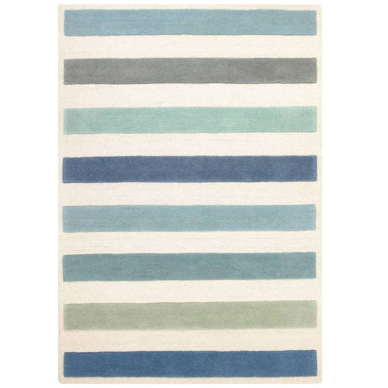 Les rayures classiques du style canne à sucre prennent vie sur ce tapis en laine texturé, alliant bouclettes et poils coupés pour un effet tridimensionnel.
