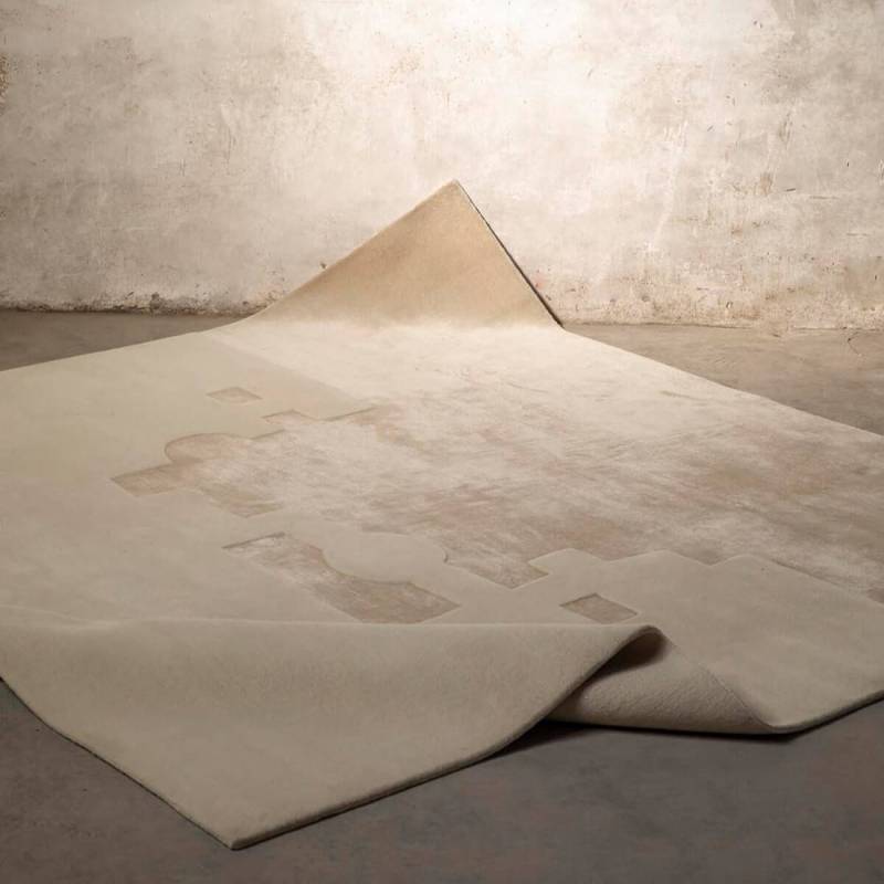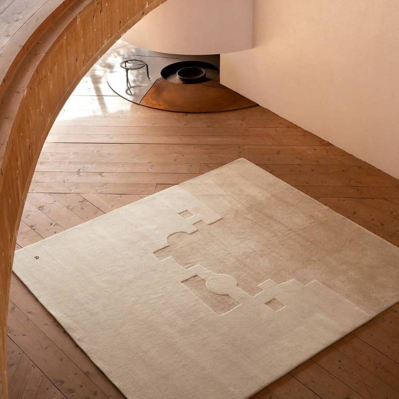 Hommage au travail de l'artiste Eduardo Chillida, ce modèle est un superbe exercice de reliefs, rappelant les sculptures en acier corten signature de l'artiste, et plus particulièrement son œuvre Gravitación 1994 réalisée avec du papier. Transposé avec la plus grande précision, Gravitación 1994 est un tapis d'intérieur tufté à la main à partir de laine de Nouvelle-Zélande.