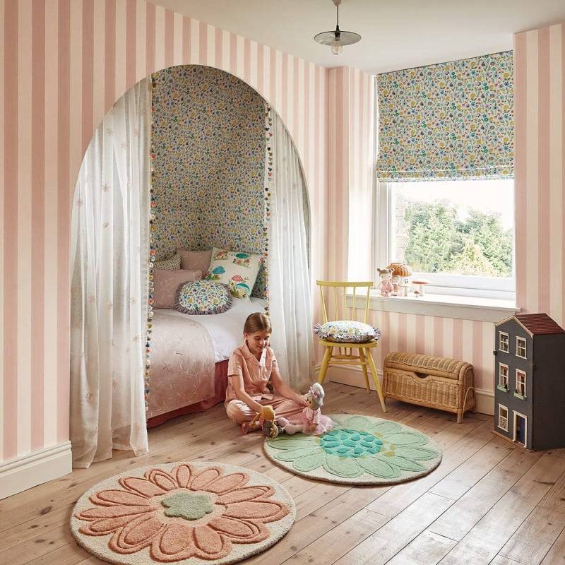 Tous deux de forme circulaire, le tapis Oops-A-Daisy s'associe à merveille au tapis Pretty Petals, créant un charmant motif floral double au sol.