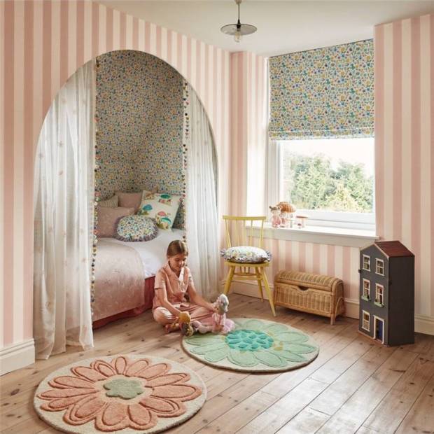 De forme circulaire, le tapis Pretty Petals s'associe à merveille au tapis Oops-A-Daisy, créant ainsi un charmant motif floral double au sol.