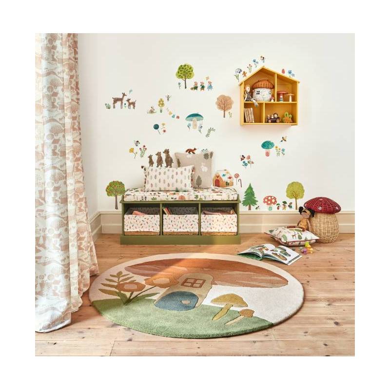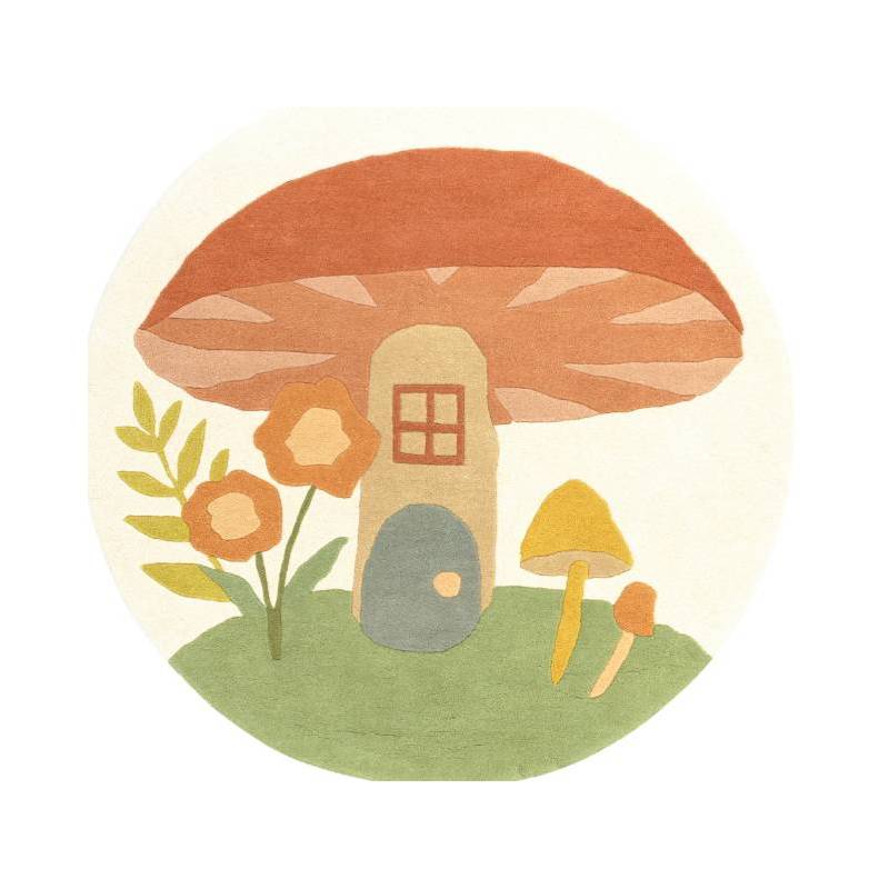 Un délicieux champignon tout droit sorti d'un livre de contes, figure au centre de ce charmant tapis en laine touffeté à la main, magnifiquement mis en valeur par des détails sculptés à la main.