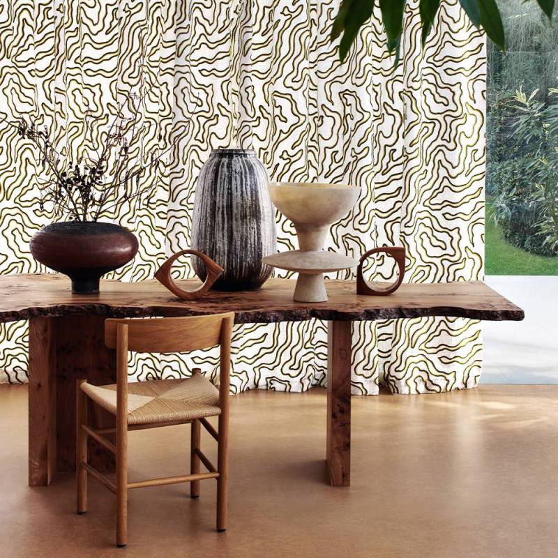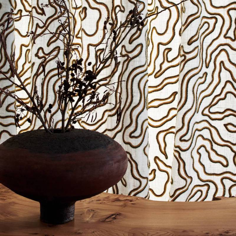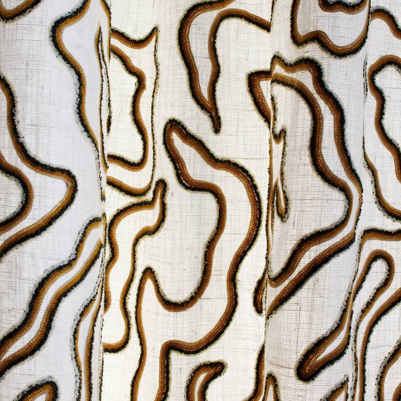 Le tissu doit être nettoyé à sec uniquement. Il ne doit pas être lavé à l’eau, ni blanchi, ni séché en machine. Le repassage est autorisé à basse température, avec précaution. Ce tissu est destiné à un usage décoratif, notamment pour les rideaux.