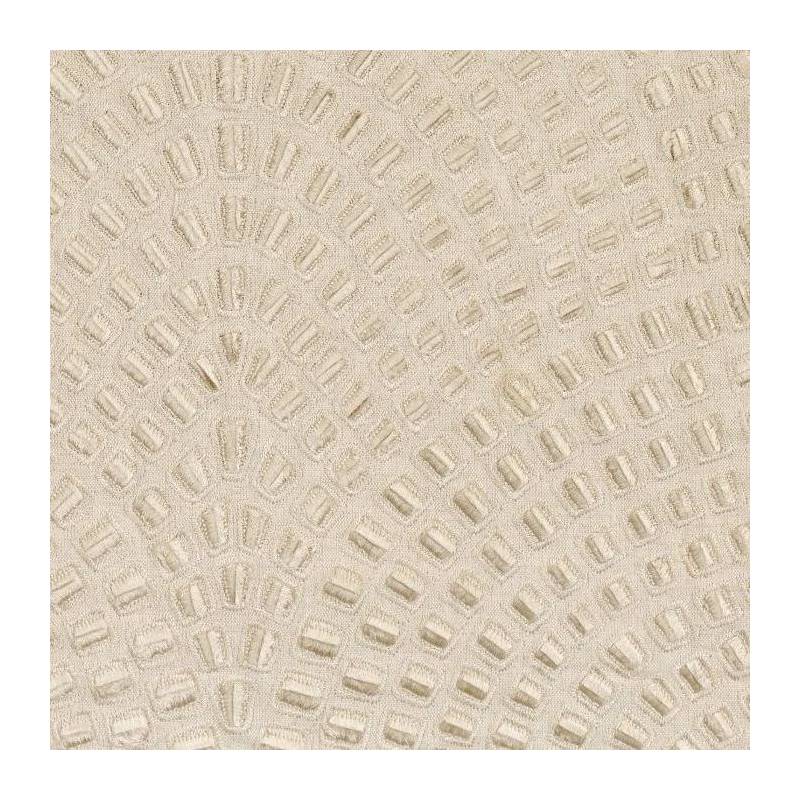 Originaire de l’Inde, la broderie « Beauséjour » puise son inspiration dans le mouvement Art Déco, cher à la marque. Son tissage de lin et coton, fin mais résistant, accueille joyau après joyau chacune des petites unités visibles sur l’étoffe : elles ont été brodées à la main puis découpées, l’une après l’autre, selon un procédé strictement artisanal. Le panache de poils coupés, tout autour, adjugent à cette broderie un surcroît de profondeur et de préciosité. Le chatoiement de ses fils de viscose naturelle s’oppose à la noblesse et à la matité du lin et du coton, pour de riches jeux d’ombres et de lumière. « Beauséjour » se prêtera aux confections de vos rideaux, plaids et coussins.