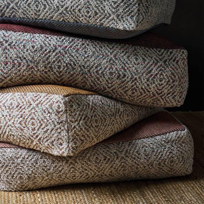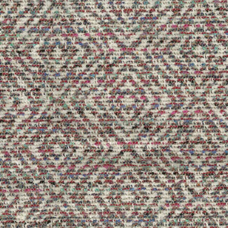 Losanges concentriques tissés avec des fils fantaisie crème et multicolores.