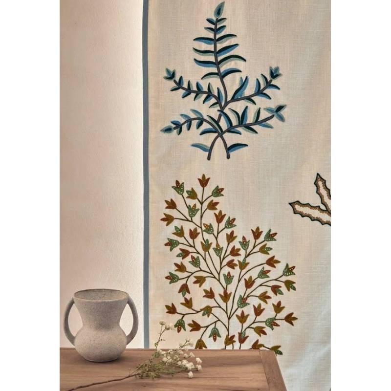 Délicat motif végétal stylisé brodé tout en finesse sur une charmante toile de coton texturée, CLARENCE rappelle les broderies traditionnelles scandinaves.