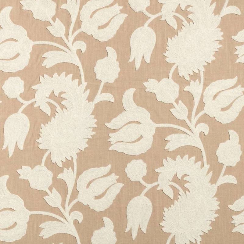 Disponible en deux coloris essentiels, Florence brodé hybride l’artisanat et la modernité en un généreux décor coton brodé sur lin à la rusticité luxueuse. Les motifs vastes et denses confèrent une épaisseur 3D, une main pleine et vivante, un effet chaleureux. A revers de l’ère digitale, ce modèle rend hommage à l’authenticité des matières et des savoir faire. L’ornementation se fait évidente et expressive, tout en cultivant douceur de teintes et sérénité.