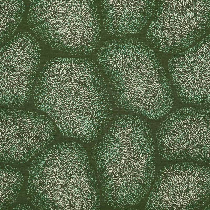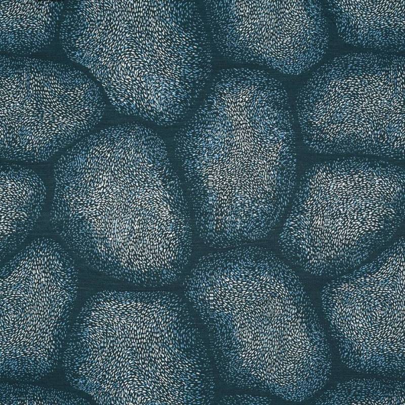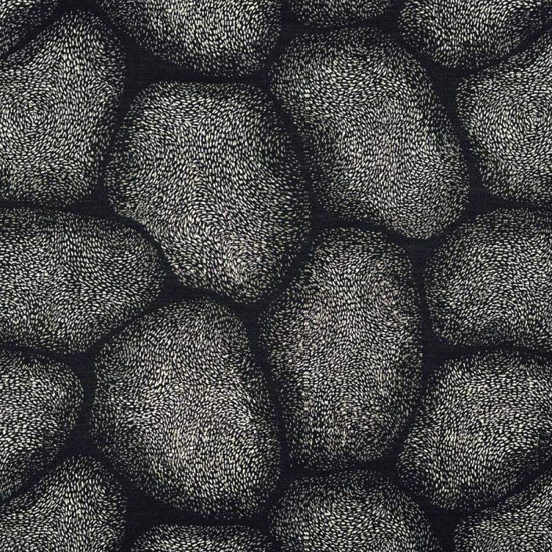 La magie de ce jacquard fluide et graphiquese révèle grâce à de délicates touches colorées, envolutes sur la surface des galets.