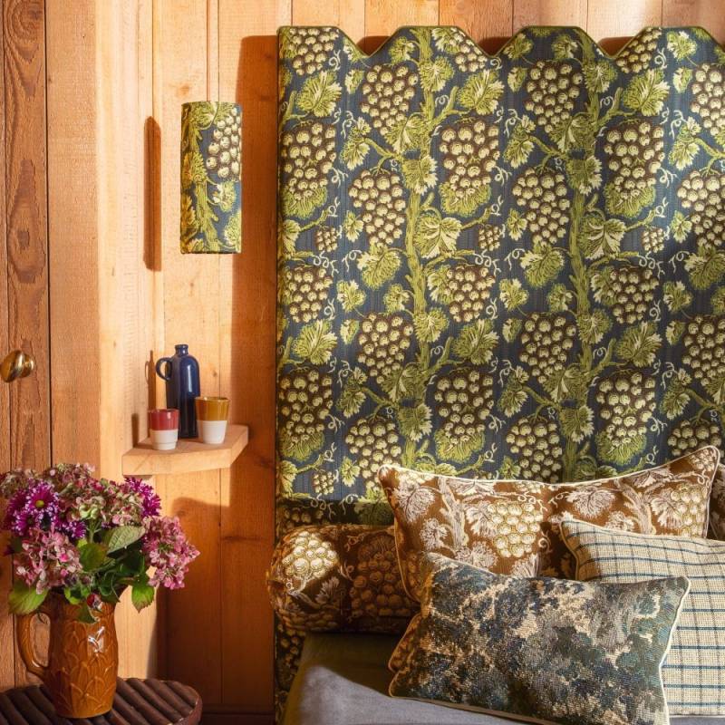 Tissu haute performance In-Outdoor, HARCOURT réinterprète une toile imprimée de la seconde moitié du XVIIIe siècle conservée dans les archives de la Maison, en un tissage dense aux teintes profondes. Célébrant les bontés de la nature dans un esprit rousseauiste, son motif de grappes de raisin en rayure a le charme des références historiques et la sincérité des dessins dont l’équilibre parfait tient à l’imperfection de sa main. Il est tissé dans les ateliers Pierre Frey du nord de la France labellisés EPV et experts en Europe dans les textiles résistants à la lumière, déperlants, lavables et anti-moisissures.