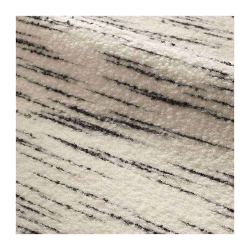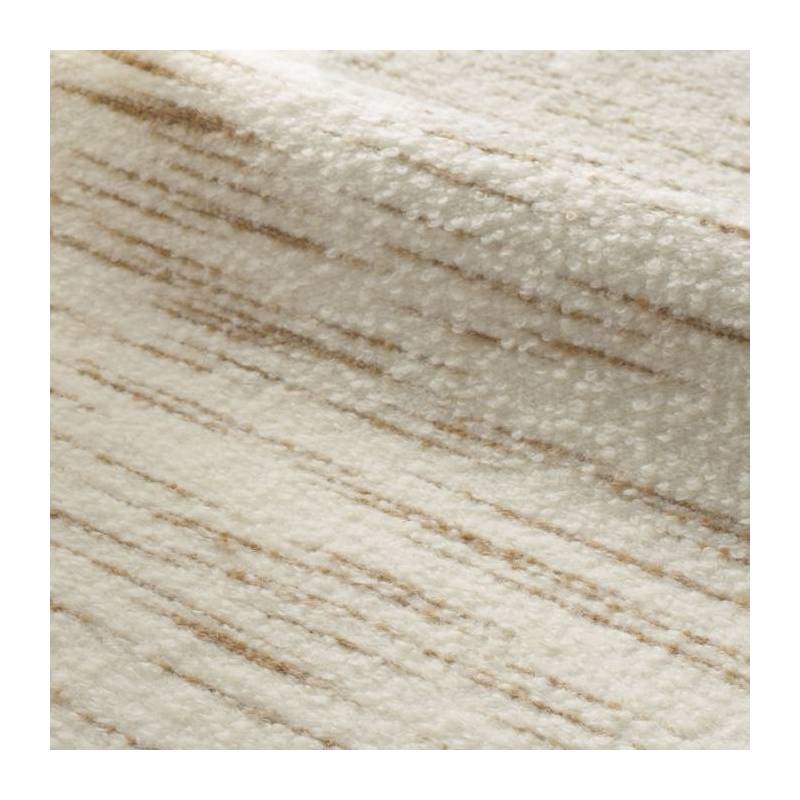 Originaire de Belgique, la bouclette « Hors du temps » fait la part belle aux matières naturelles : la laine vierge, le coton et l’alpaga. C’est parce qu’elle a été tissée à une vitesse réduite, et avec de plus gros fils de laine, qu’elle présente ce bel aspect gonflant, faussement déstructuré. Elle est rehaussée de ce motif irrégulier, presque une rayure, tantôt couleur Sable, tantôt Carbone.