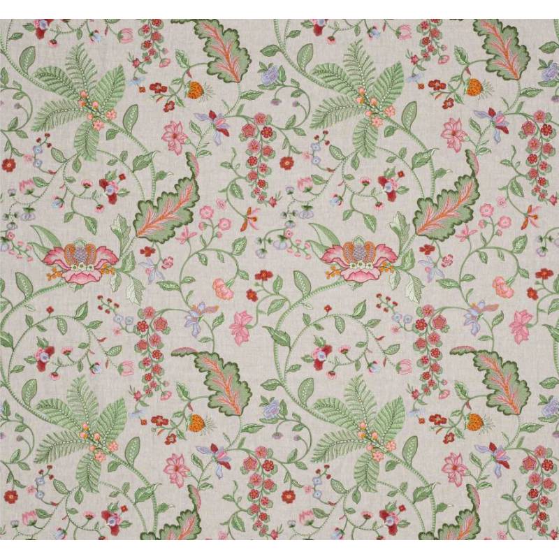 Inspirée par la beauté de la nature, cette broderie légère et élégante présente des motifs stylisés entrelacés dans des lignes gracieuses et fluides. Des fleurs, des fruits et des feuilles luxuriants sont méticuleusement travaillés avec des fils de satin, ajoutant une douce brillance qui contraste magnifiquement avec un fond de lin mat.