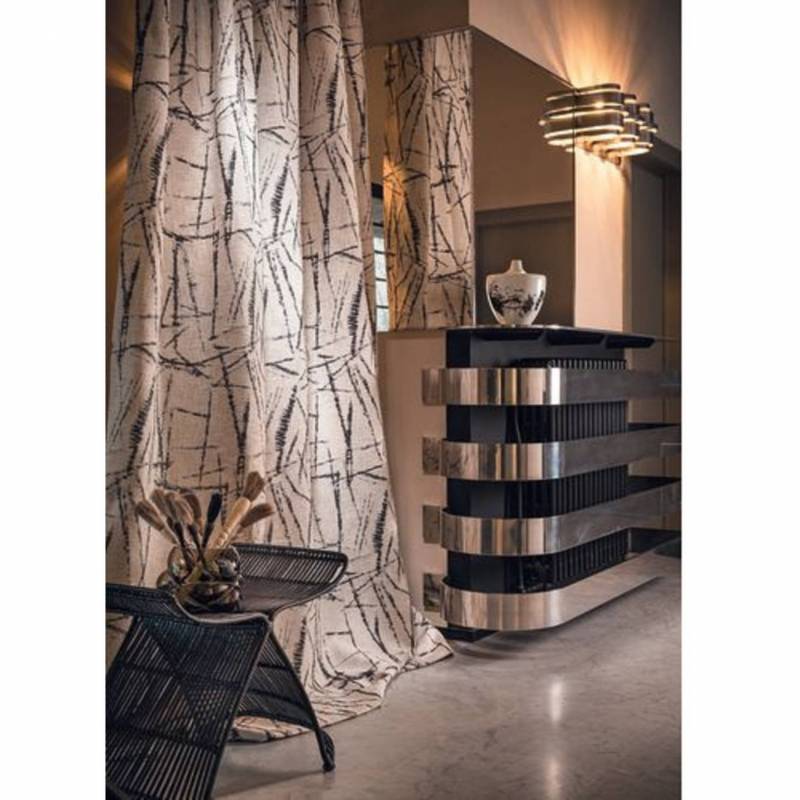 Jeu de Signes est un jacquard de coton au dessin très poétique. Sa beauté réside dans l’alliance de deux matériaux très différents : sur une base en coton flammé, d’esprit très naturel, un fil polyamide de style raphia, plus moderne, dessine un motif rappelant les écritures japonaises, comme déposées au pinceau.