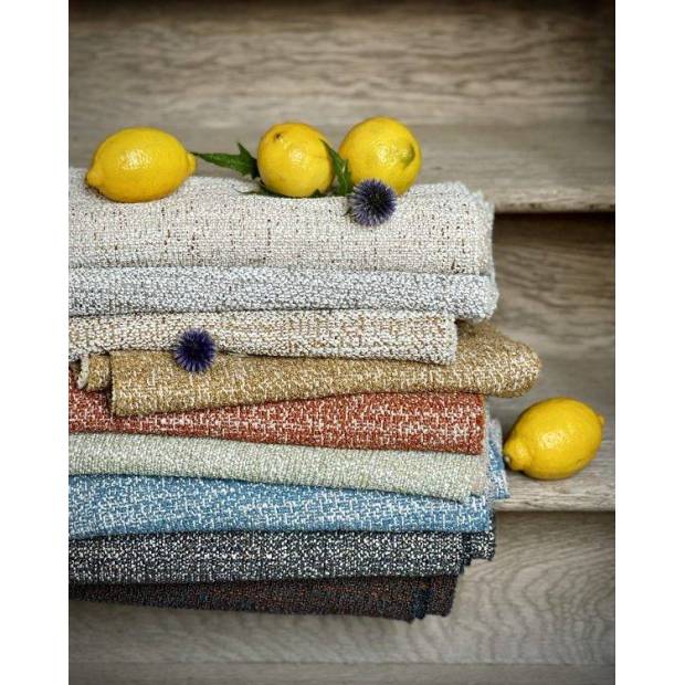 Son aspect grainé et chiné en bi-teinte est accentué par l’usage d’un très beau fil twisté de couleur qui parsème et illumine le tissu de petites mouchettes colorées.
