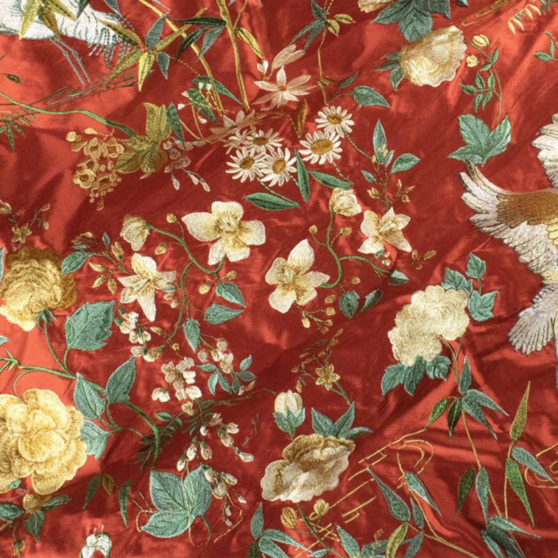 Les fonds bleu marine et blanc sont réalisés en 100% coton, tandis que les fonds rouge, beige et bleu clair sont en 100% soie.
