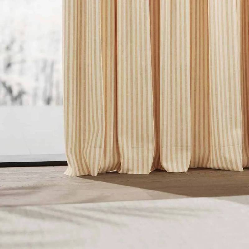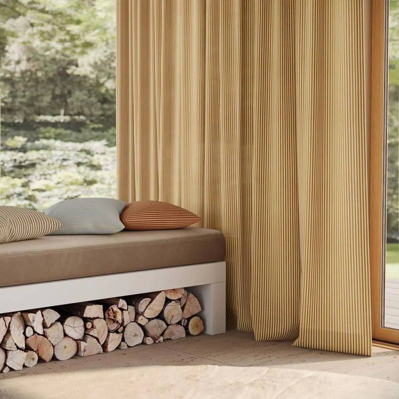 Un classique intemporel, fraîchement réinterprété. Avec ses fines rayures de 5 mm dans le sens de la chaîne, Loke incarne la symbiose entre tradition et réinterprétation contemporaine. Quand ce tissu de décoration double largeur et opaque n’est pas travaillé lisière placée de haut en bas, il habille les fenêtres de toute hauteur de fines rayures verticales sans coutures. Composé à parts égales de lin et de coton, il combine le naturel scandinave avec des tons chauds méditerranéens. Avec son tombé décontracté, ce tissu double face léger et polyvalent peut également être utilisé comme store bateau. Un nouveau venu attrayant dans la gamme de rayures de nya nordiska.