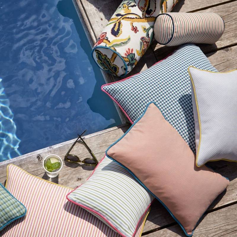 Un vichy intemporel à petits carreaux, décliné dans une palette de couleurs fraîches, qui met en valeur la polyvalence de ce tissu d'intérieur/extérieur. Résistant, décoloré et pratique pour les zones de passage fréquent, comme tous les tissus de la collection La Jolie, il deviendra assurément un classique. Réversible : utilisable des deux côtés.