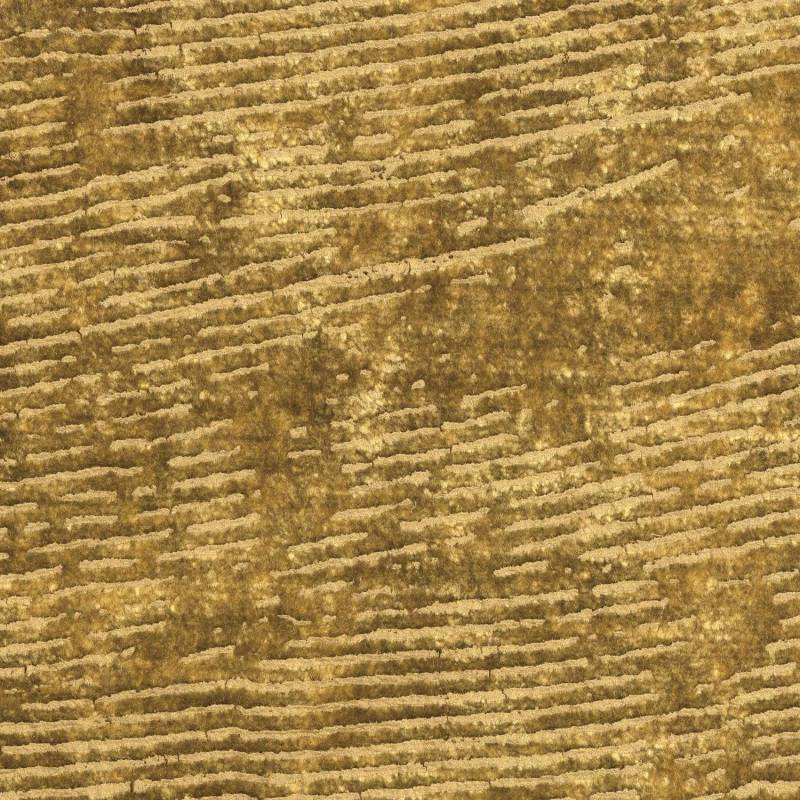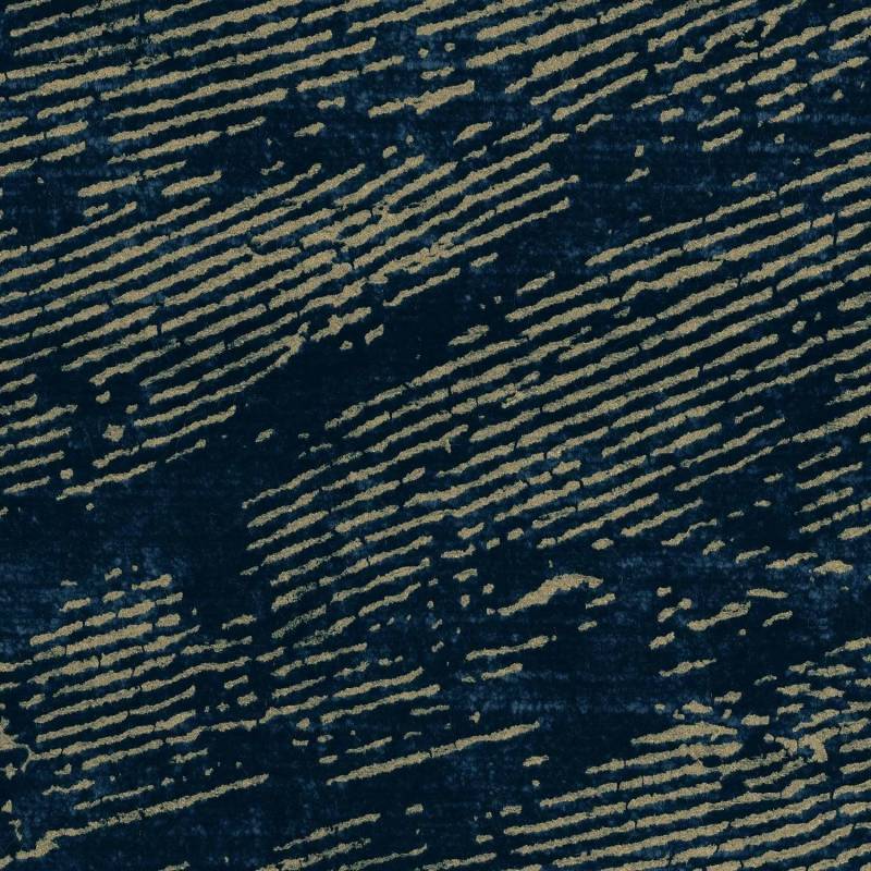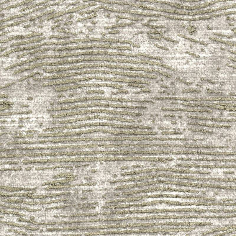« Luce di Roma » est un velours de coton et viscose imprimé, prédestiné à la confection de rideaux, de sièges à usage intensif, et d’autres objets de décoration. Telles les empreintes d’une divinité géante, figées à jamais dans l’or de l’étoffe, son motif iridescent est le fruit d’une impression au cadre traditionnel, qui estampe le tissu pour permettre à une impression dorée de se déposer sur la surface du velours. Une phase de finition, dite « stone Wash », lave et brosse les fibres du velours au contact de pierres ponces, pour lui conférer cet effet vintage et faussement craquelé. Les trois coloris Écru, Grège et Mordoré offrent une lamination dorée ; les trois autres, Argent, Gris de Maure et Bleu Misia, une lamination argentée.