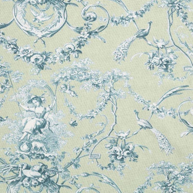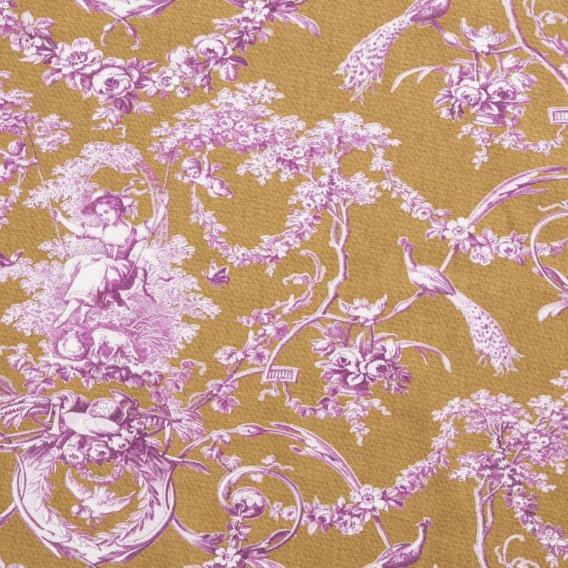 De nouveaux coloris, corrigés, adaptés ou réinventés, de la mythique Toile de Jouy Ludivine, éditée depuis des décennies par la maison Thévenon, voient le jour sur le support gracieux qu’est la percale de coton. Que ce soit sur un orange clémentine, un bleu dragée, un rose maquillage, un vert de gris bleuté, un beige corde foncé ou un écru intemporel, la demoiselle n’a pas fini de se balancer. Toujours et jamais la même.