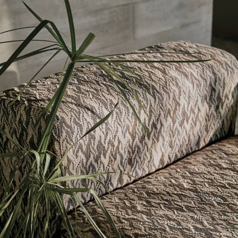 Mêlant coton et laine dans un tissage jacquard détaillé, ce tissu résistant présente un motif à chevrons irrégulier. L'ajout d'une trame bouclée épaisse crée un relief et un contraste subtils, créant ainsi un tissu à la fois original et polyvalent.