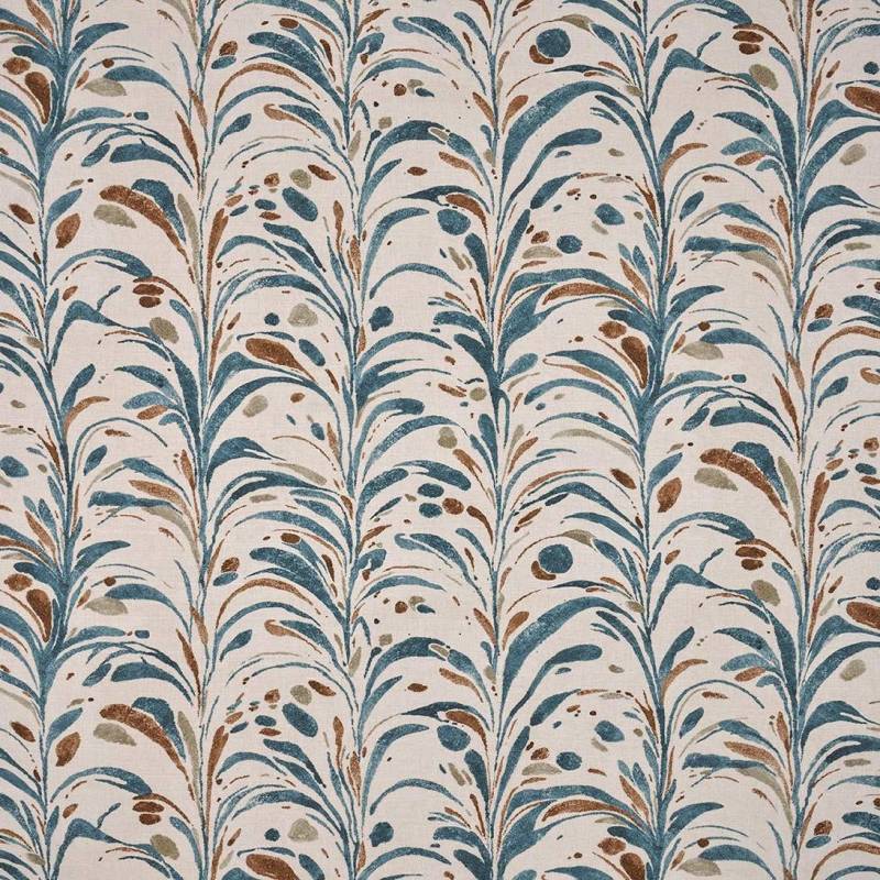 Au XVIIIe siècle, par souci d’économie mais également portée par une tradition des décors peint à la main, la Suède était friande de faux marbres en trompe-l’œil : les demeures historiques encore en place en sont remplies. MARMOR évoque avec amusement ces motifs peints, grâce à son dessin de gouttes disposées en rayures et imprimées sur lin, dans un camaïeu de bleus et de teintes boisées.