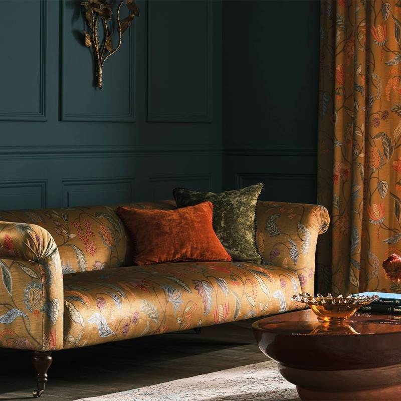 Un motif floral « arbre de vie » éclatant, imprimé sur velours.