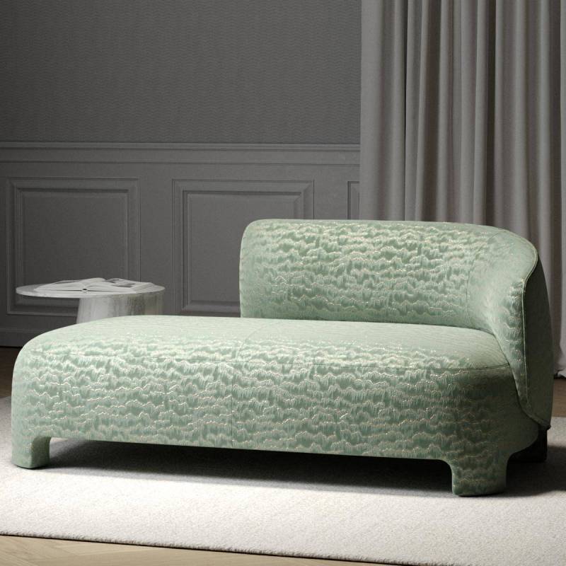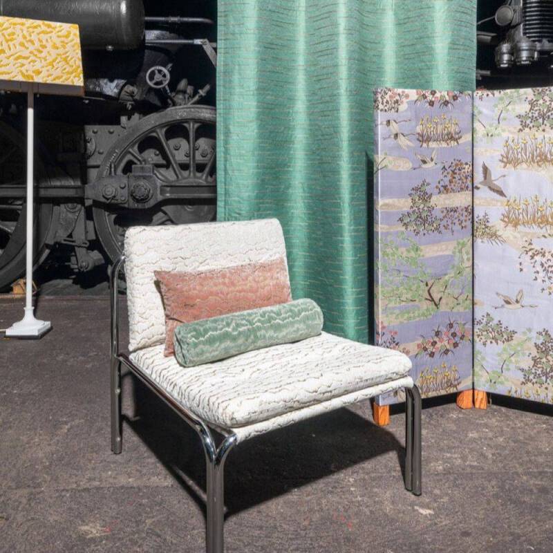 Un tissu d'ameublement qui unit avec originalité paysage et texture. Sur un velours de coton doux, des chaînes de montagnes stylisées se dessinent en fines broderies, rehaussées d'une seconde nuance qui apporte subtilement ombre et profondeur au sol. La précision de la broderie évoque les délicates gradations des estampes japonaises, conférant au tissu une aura presque artistique. Qu'il s'agisse de tissus d'ameublement, de coussins ou de décoration murale, MOUNTAIN LINES affirme invariablement une présence sculpturale. Chaque regard porté sur ses contours révèle de nouveaux détails, permettant d'apprécier sans cesse la finesse de son élaboration.