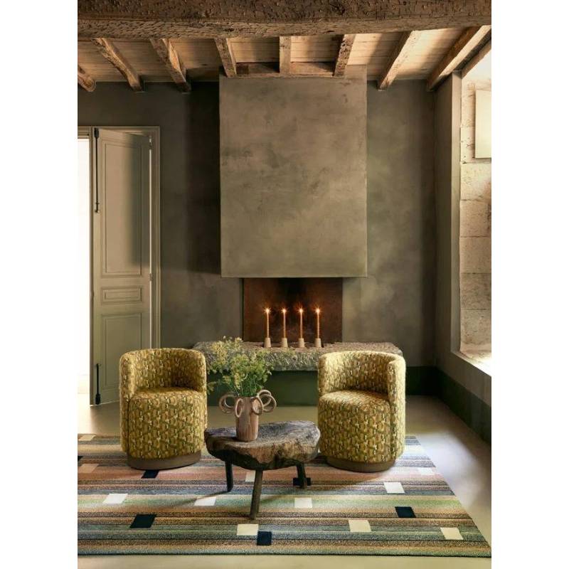 Avec son charmant motif de ronds entrelacés et sa main laineuse et douce, ce tissu évoque le Mys, ou l’art du bien-être à la suédoise. Tissé dans les ateliers Pierre Frey du nord de la France labellisés EPV, il est particulièrement adapté à une utilisation siège.