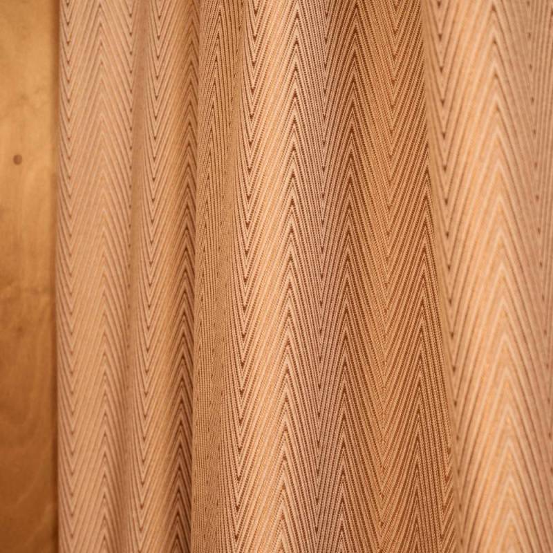OUD, un rideau au motif chevron bicolore raffiné et à l'éclat discret, se démarque par sa qualité très souple et sa légère brillance. Il habillera les intérieurs avec élégance.