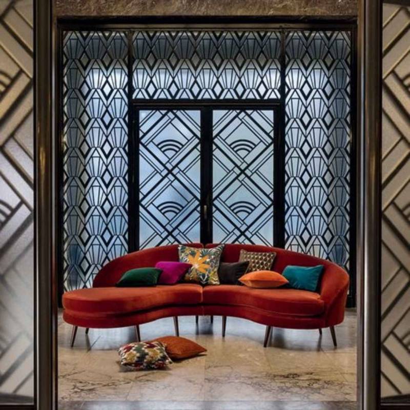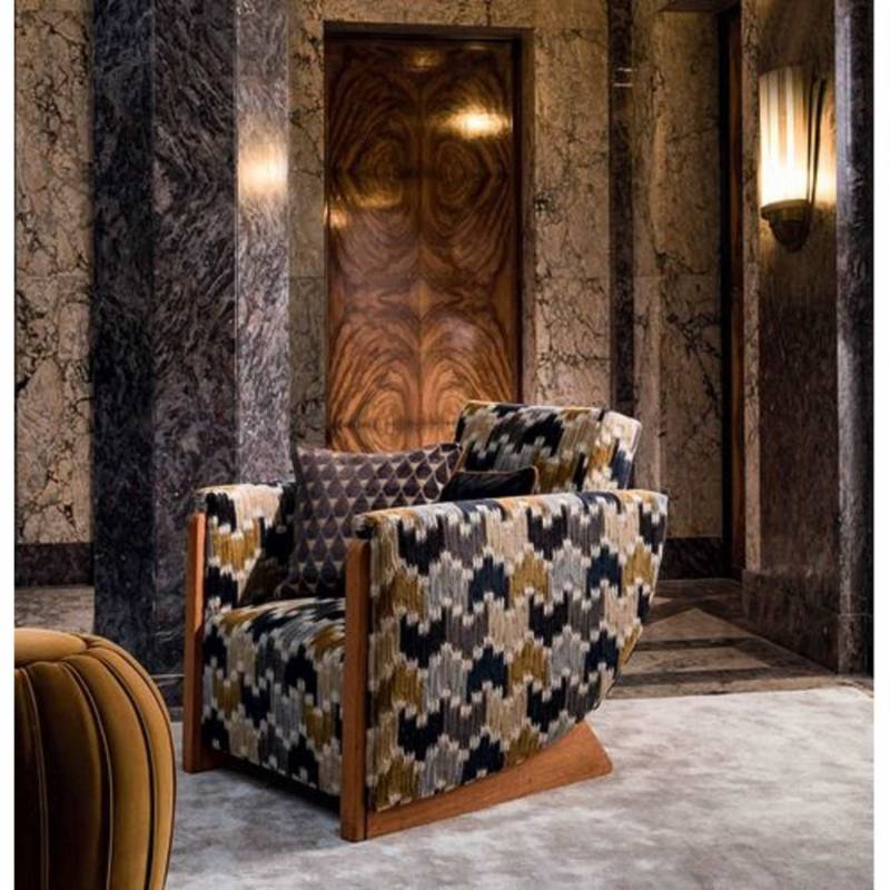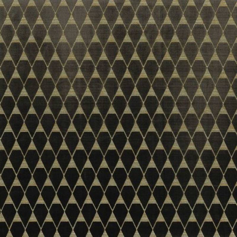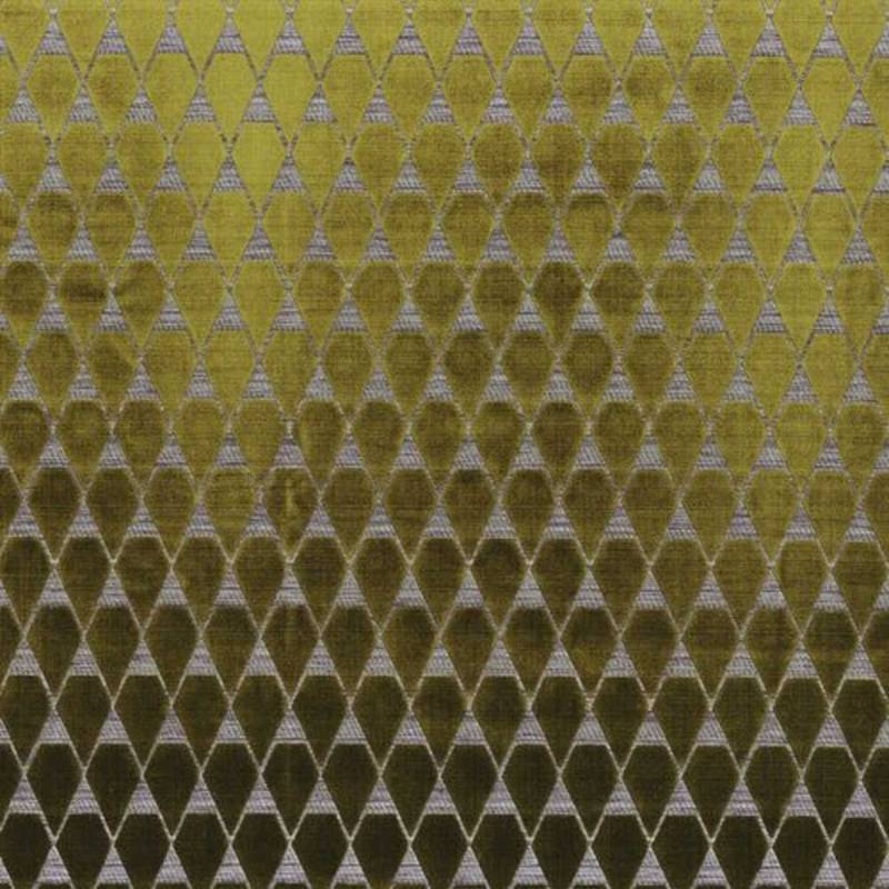 « Parure Précieuse » est un superbe velours de viscose épinglé, dont le motif géométrique dresse un parallèle discret entre cette collection et l’héritage Art Déco de la marque. En trame, un fil fantaisie flammé, marié à un fil polyester brillant, crée ce fond sobre, discret, et pourtant multicolore, accentuant la régularité esthétique du motif.