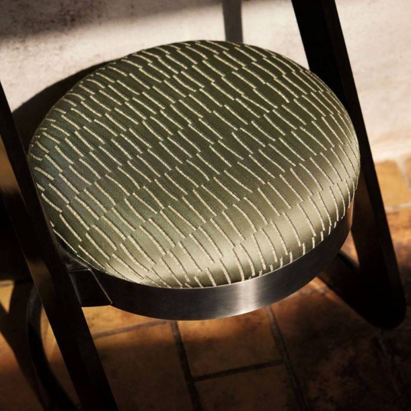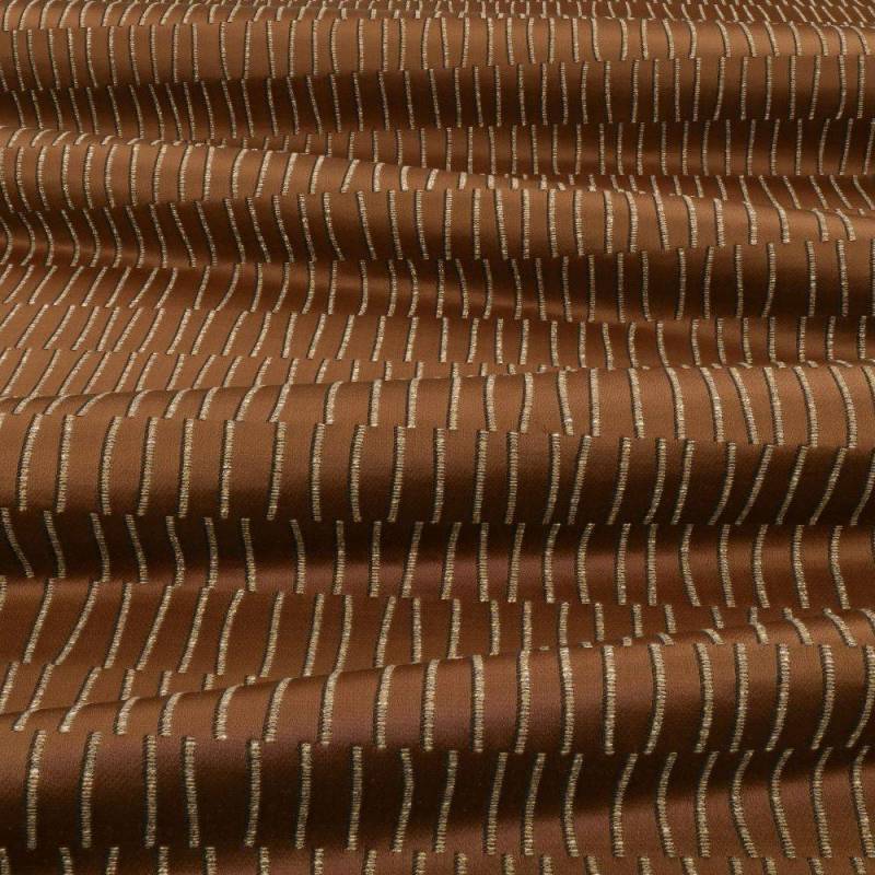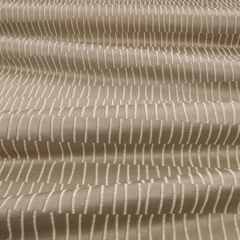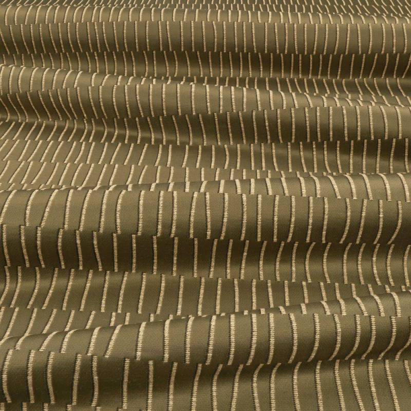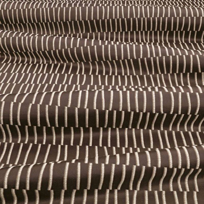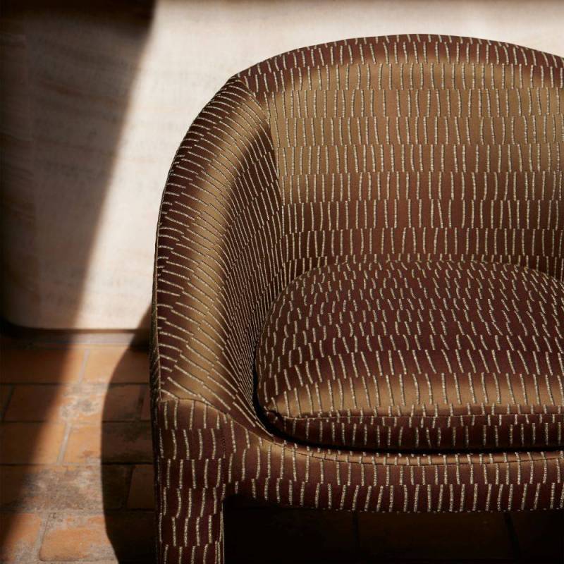 Des rayures, mais pas tout à fait ; des bandes de lignes asymétriques semblent se courber et s’étirer sur un tissage jacquard lisse au léger chatoiement. Des combinaisons de couleurs naturelles et des fils ton sur ton confèrent à ce tissu élégant un caractère rustique subtil.
