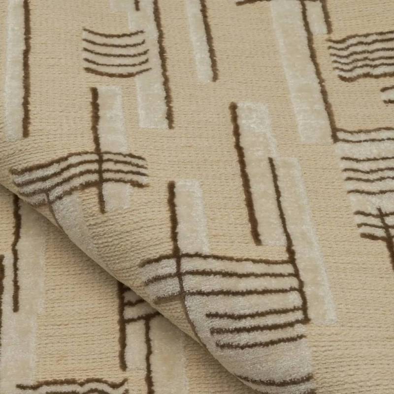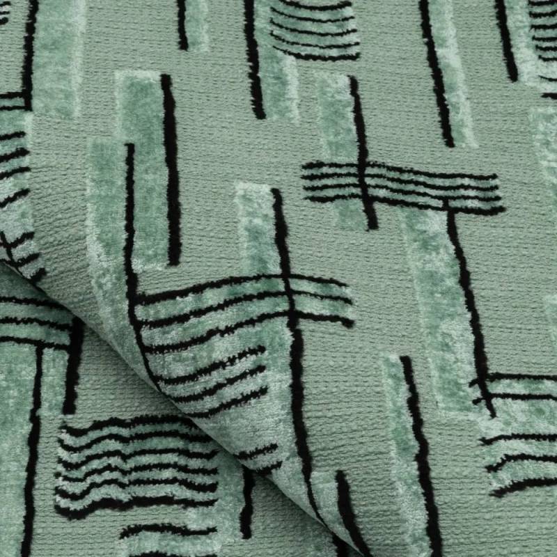 Fines vagues et délicates baguettes, au poil discrètement brillant, se dispersent sur la surface de Velours Pullman, un jacquard au fond étonnamment cotonneux, décliné en 6 coloris résolument inspirés par l'époque Art Déco.