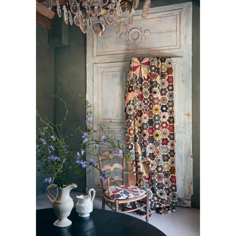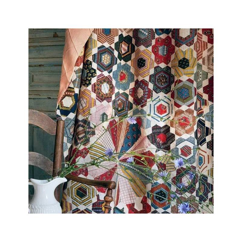 Imprimé en trompe-l’œil inspiré d’un patchwork datant du XIXe siècle et conservé dans les archives de la Maison, QUILT évoque avec authenticité cette activité domestique très répandue dans les pays anglo-saxons qui consistait à faire de la récupération un art.