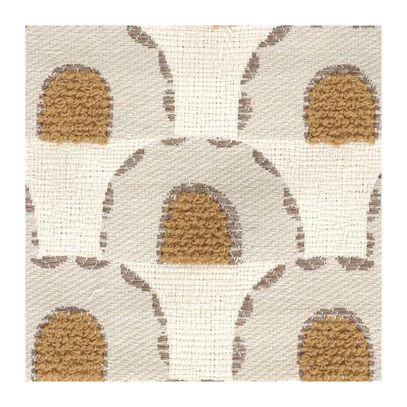De confection italienne, le jacquard « Soleil de midi » égaye de ses cinq coloris – Or, Arabesque, Grège, Bleu Misia et Carbone – la collection IN & OUTDOOR Embellie. Son gros fil bouclette tramé délimite le cœur de sa forme géométrique, en jouant d’effets de texture. Sa composition majoritaire en polypropylène lui garantit une haute résistance à l’eau chlorée et salée, ainsi qu’une excellente solidité des couleurs à la lumière et aux intempéries. Facile d'entretien, le polypropylène présente en outre un impact environnemental minoré du fait de son recyclage facile. « Soleil de midi » vous invite à évoluer de l’intérieur vers l’extérieur, et inversement, au gré des saisons.