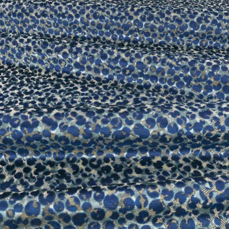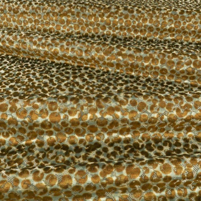 Inspiré de la fourrure luxueuse d'un chat sauvage, Teba est un velours tissé jacquard décadent où des taches tachetées émergent de fils métalliques dans une gamme de nuances frappantes pour former un design accrocheur, avec un intérêt textural somptueux.