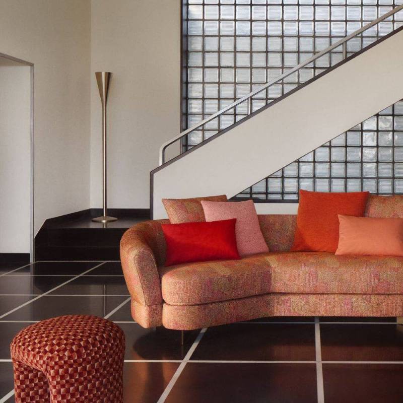 Une chenille jacquard, douce comme un velours. Une sorte de vitrail futuriste caractérisé par un motif contemporain et dynamique fait d'éléments géométriques colorés. Vitrail est ignifuge et lavable. Convient pour les sièges.