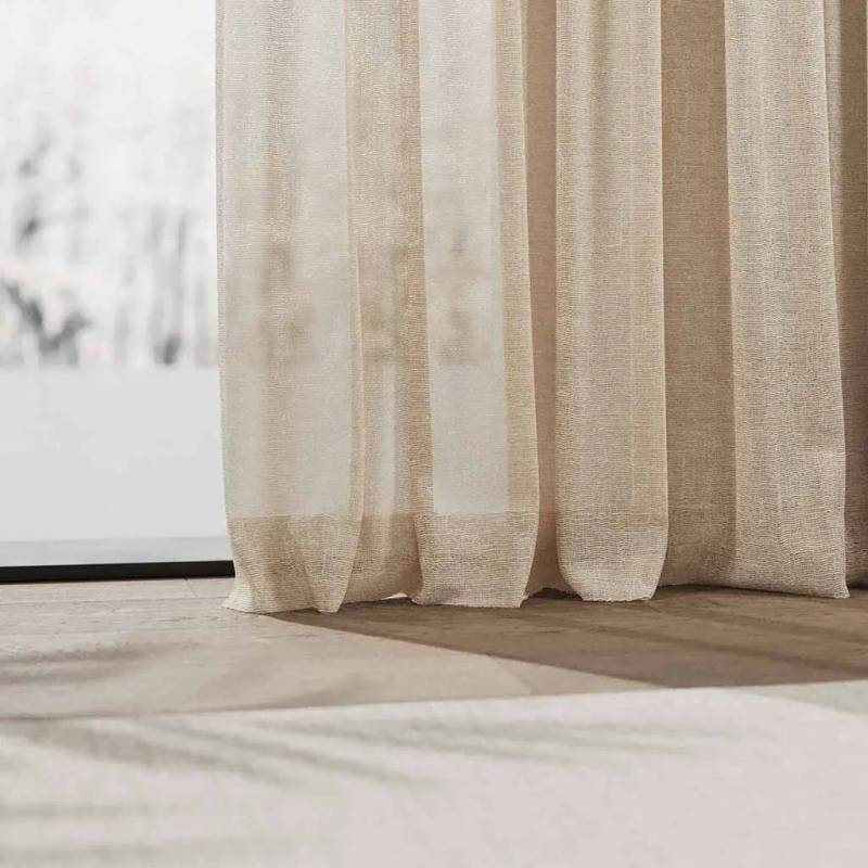 La partition des tons doux. Avec son look lin moderne en neuf coloris naturels de lin et de terre, Ylvi fournit la scène adéquate à chaque intérieur. Le tissu légèrement froissé à la structure ajourée mouvante convainc par son allure décontractée et son toucher sec. Sa double largeur et sa facilité d’entretien rendent polyvalent ce tissu de décoration semi-transparent. Sa gamme de coloris pastels trouve toujours le bon ton grâce à une bichromie subtile dans des nuances comme Almond, le rose délicat de Powder ou le puriste Stone.