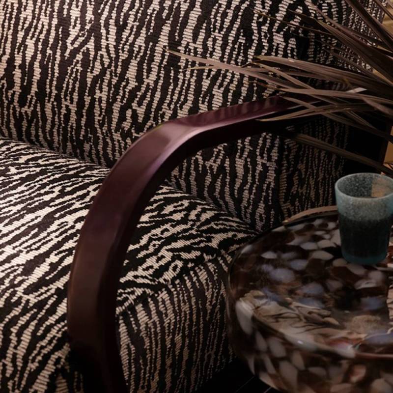 Le velours Zander impressionne par son motif abstrait d'inspiration animale, créé grâce à un riche contraste entre un velours coupé coloré et un fond bouclé texturé. Il en résulte un velours spectaculaire, plein de mouvement, de relief et d'une richesse tactile captivante. Luxueux et résistant, il est idéal pour habiller des meubles avec audace.