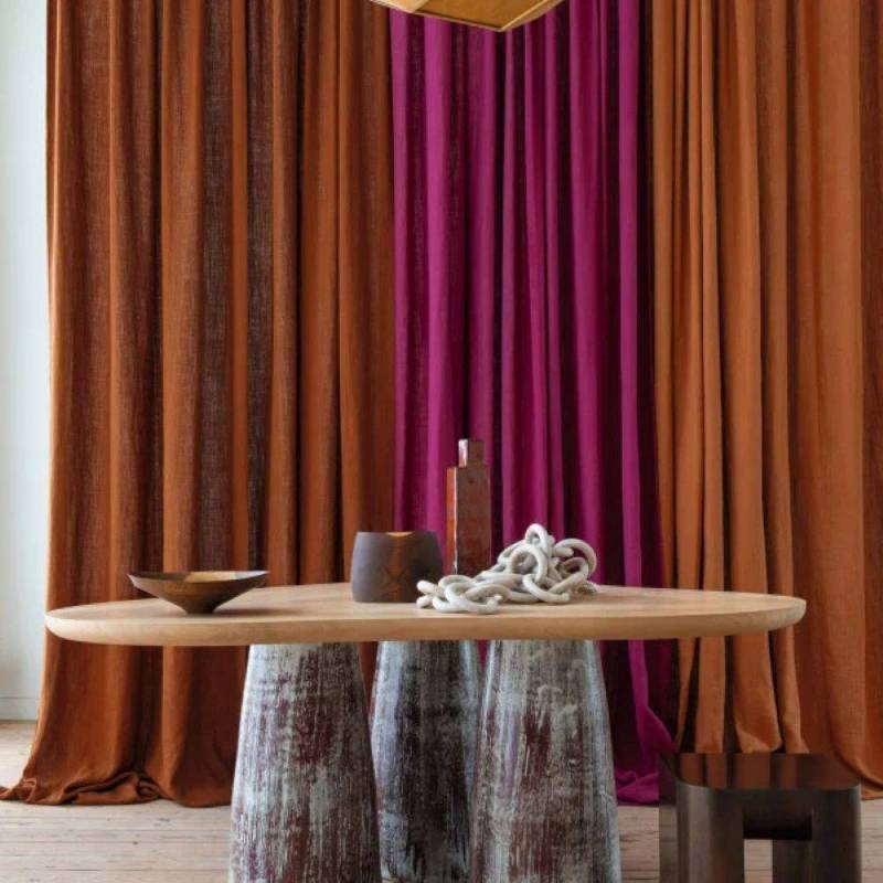 Le, lin fibre noble et végétale révéle de légeres irrégularités et des variations de teintes qui soulignent son charmve authentique. Sa teinte naturelle peut légérement varier d'une récolte à l'autre et évoluer subtilement avec le temps reflétant ainsi l'essence meme de cette matière vivante.